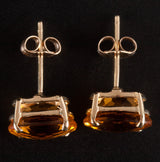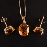 14k Yellow Gold Oval Checkerboard Citrine Solitaire Necklace Earring Set 9.2ctw