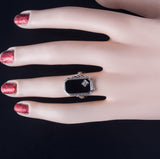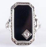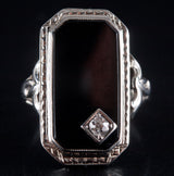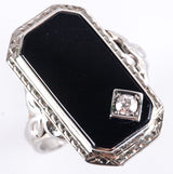 Vintage 1920's 18k White Gold Onyx Diamond Cocktail Style Ring .09ctw 3.95g