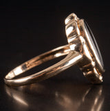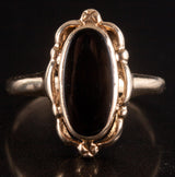 10k Yellow Gold Oval Cabochon Inlay Onyx Solitaire Ring 1.92g Size 5.5