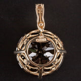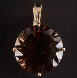 10k Yellow Gold Round Smoky Quartz Solitaire Style Pendant 13.92ct 5.85g