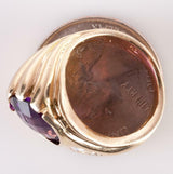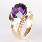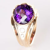 14k Yellow Gold Amethyst Solitaire Cocktail Ring W/ Diamond Accents 14.16ctw