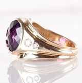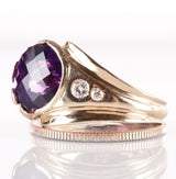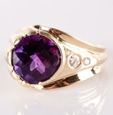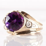 Is purple your favorite color? This unique 14k yellow gold Amethyst and Diamond ring will fit the bill. With a off set, checkerboard cut amethyst and bezel diamonds, this ring is a true show of craftsmanship. Add this beautiful piece to your collection.