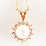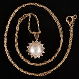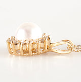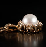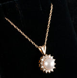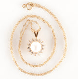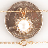 14k Yellow Gold Cultured Pearl & Diamond Necklace W/ 18" Chain .28ctw 2.76g