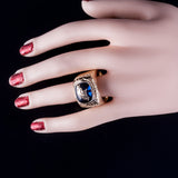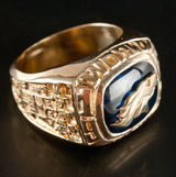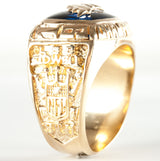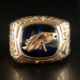 14k Yellow Gold Cushion Lab Sapphire & Diamond Broncos Football Ring 10.41ctw