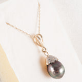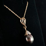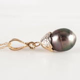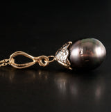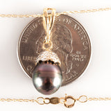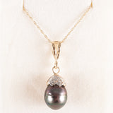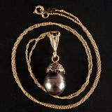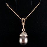 14k Yellow Gold Drop Shaped Cultured Tahitian Pearl Pendant W/ 16" Chain 3.44g