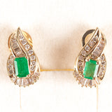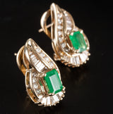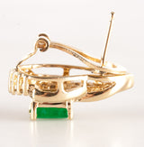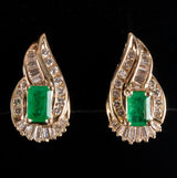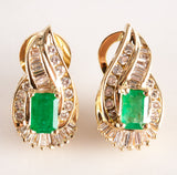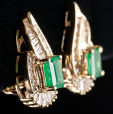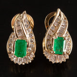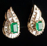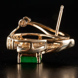14k Yellow Gold Emerald Diamond Cluster Huggie Earrings W/ Omega Backs 1.84ctw