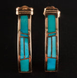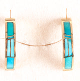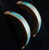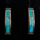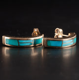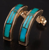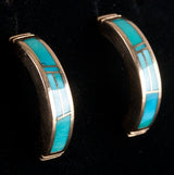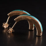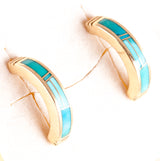 14k Yellow Gold Inlay Turquoise Half Hoop Earrings W/ Butterfly Backs 6.17g