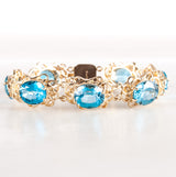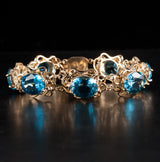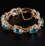 14k Yellow Gold Large Oval Swiss Blue Topaz Bracelet 42.0ctw 29.6g 6.5" Length
