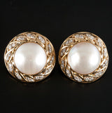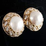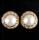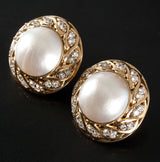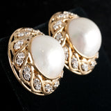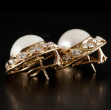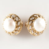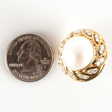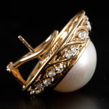 14k Yellow Gold Mabe' Pearl & Diamond Pierced Huggie Earrings 1.92ctw 23.64g