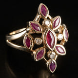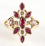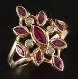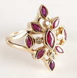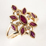 14k Yellow Gold Marquise Ruby & Diamond Cocktail Ring 1.29ctw 5.48g