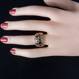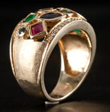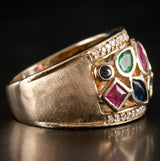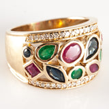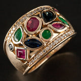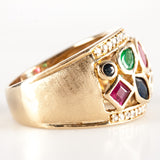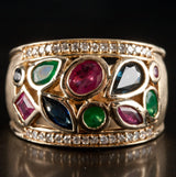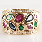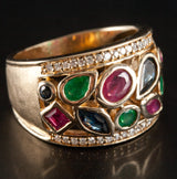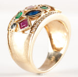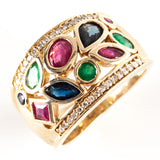 14k Yellow Gold Multi-Shape Emerald Sapphire Ruby Diamond Cocktail Ring 2.43ctw