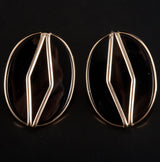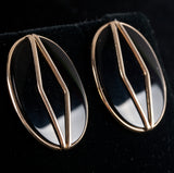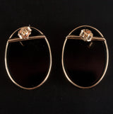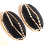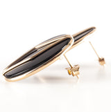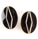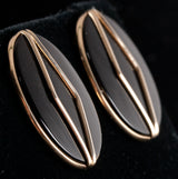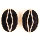 14k Yellow Gold Oval Cabochon Onyx Solitaire Stud Earrings W/ Butterfly Backs