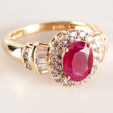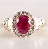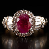 14k Yellow Gold Oval Ruby Diamond Halo Style Cocktail Ring 2.47ctw 3.38g