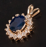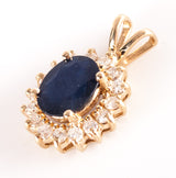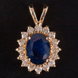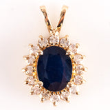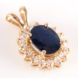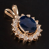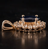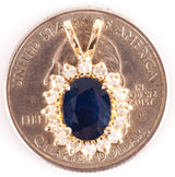 14k Yellow Gold Oval Sapphire Round Diamond Halo Style Pendant 2.92ctw 2.48g
