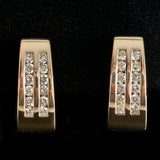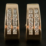 14k Yellow Gold Round Diamond Huggie Style Earrings W/ Omega Backs .72ctw