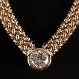 14k Yellow Gold Round Diamond Solitaire Stationary Collar Style Necklace 1.0ctw