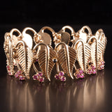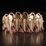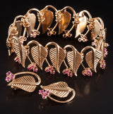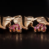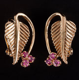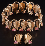 14k Yellow Gold Round Ruby Leaf Style Bracelet Clip-On Earring Set 4.88ctw 54.5g