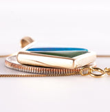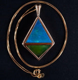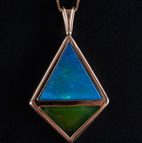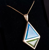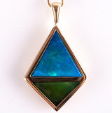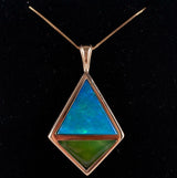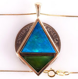 14k Yellow Gold Triangle Inlay Cut Opal & Chrysoprase Pendant W/ 16" Chain