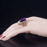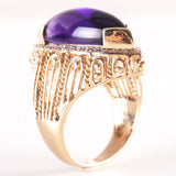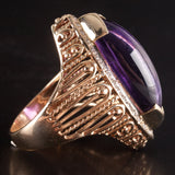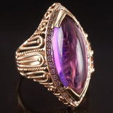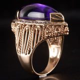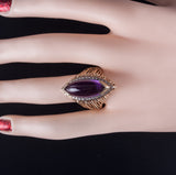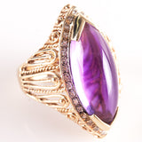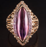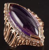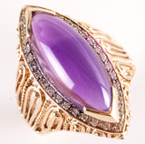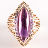 14k Yellow White Gold Marquise Cabochon Amethyst Diamond Cocktail Ring 3.86ctw