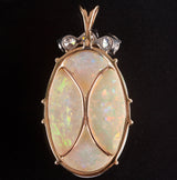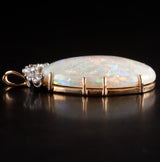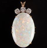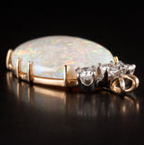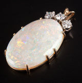 14k Yellow White Gold Oval Cabochon Opal Round Diamond Pendant 20.48ctw 7.52g