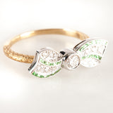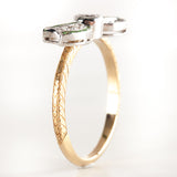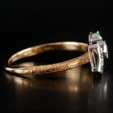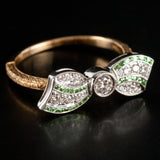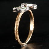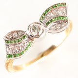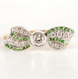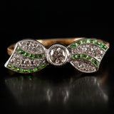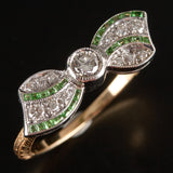 14k Yellow White Gold Princess Tsavorite Garnet & Diamond Bow Style Ring .34ctw