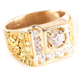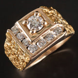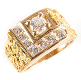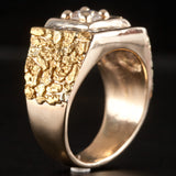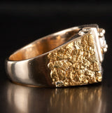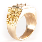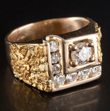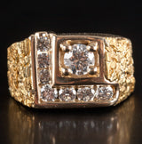 Men's 14k Yellow Gold / 20k Natural Gold Nugget Round Diamond Ring 1.92ctw 19.3g