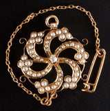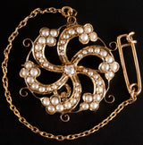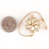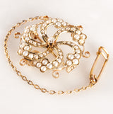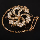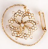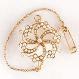 Vintage 1920s 14k Yellow Gold Pearl Old Mine Diamond Pin Pendant Combo .05ctw