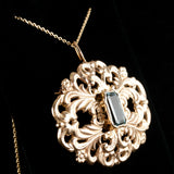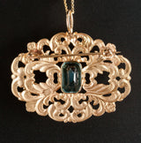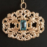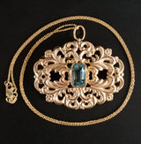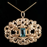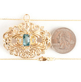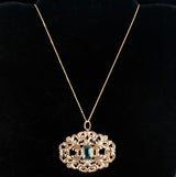 Vintage 1940's 14k Yellow Gold Aquamarine Pendant Brooch Combo W/ Modern Chain