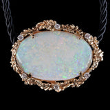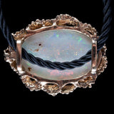 This gorgeous vintage 1960's opal and diamond pendant says love, not war. Surrounded in a gold floral design with diamonds, the opal stands out and shines.This pendant would make a great surprise for anyone who wants to stand out and make a statement.
