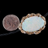 Vintage 1960's 14k Yellow Gold Opal Solitaire Pendant W/ Diamond Accents 38.3ctw