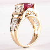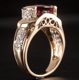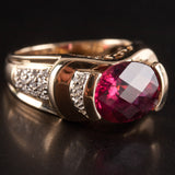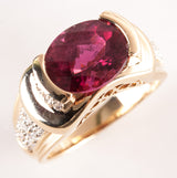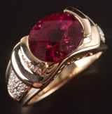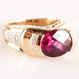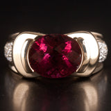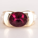 14k Yellow Gold Oval Checkerboard Pink Tourmaline Diamond Ring 3.75ctw 8.76g