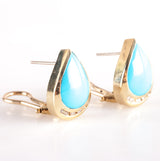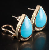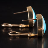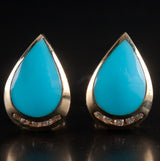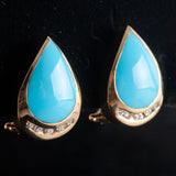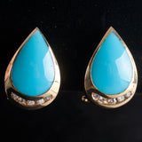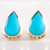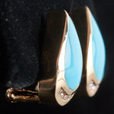 14k Yellow Gold Pear Cabochon Turquoise Diamond Huggie Earrings .15ctw 9.02g