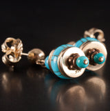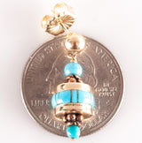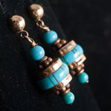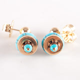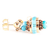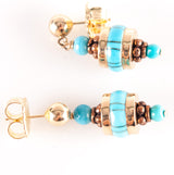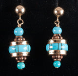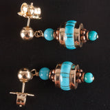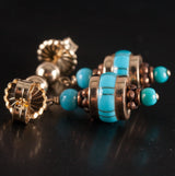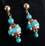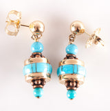 14k Yellow Rose Gold Inlay & Round Bead Turquoise Dangle Style Earrings 5.02g