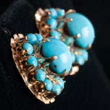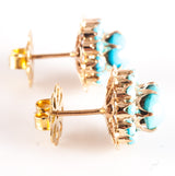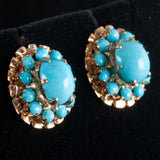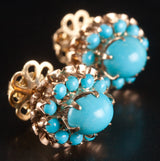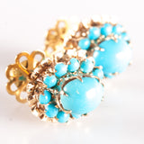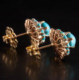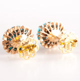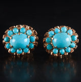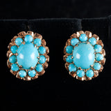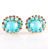 Vintage 1940's 16k Yellow Gold Cabochon Turquoise Halo Style Stud Earrings 5.81g