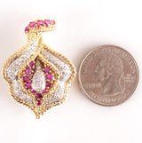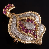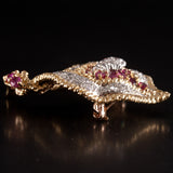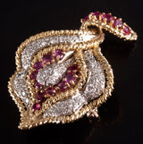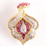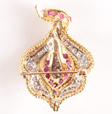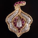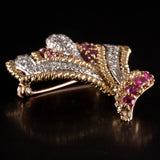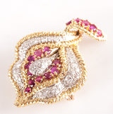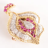 Vintage 1970's 16k Yellow White Gold Round Diamond Ruby Brooch 2.52ctw 11.3g