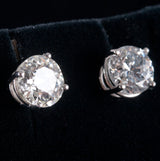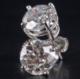 950 Platinum Old Euro Diamond Solitaire Stud Earrings W/ Butterfly Backs 3.71ctw