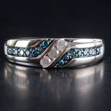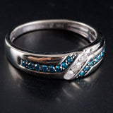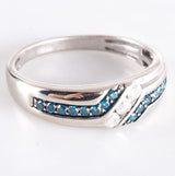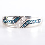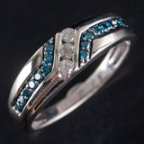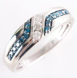 10k White Gold Round Diamond & Blue Diamond Ring .42ctw 4.45g