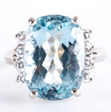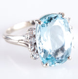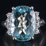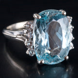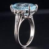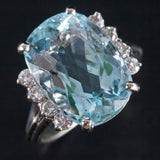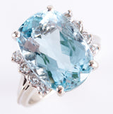 14k White Gold Oval Aquamarine Diamond Cocktail Ring 6.31ctw 5.42g