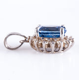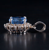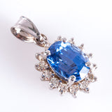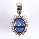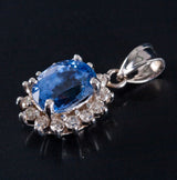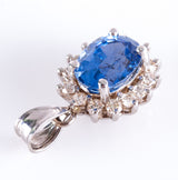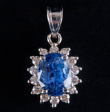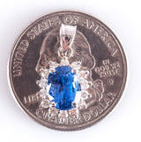 14k White Gold Oval Ceylon Sapphire & Diamond Halo Style Pendant 2.28ctw 2.15g