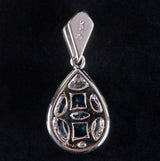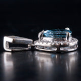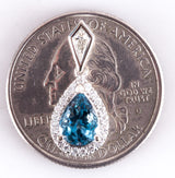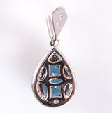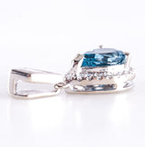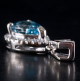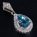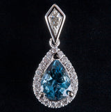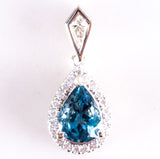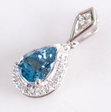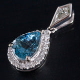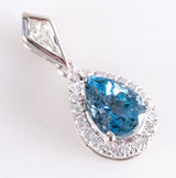 14k White Gold Pear Blue Zircon And Diamond Halo Style Pendant 1.73ctw 1.90g