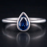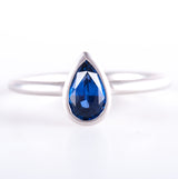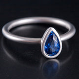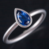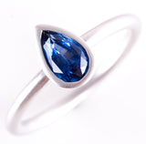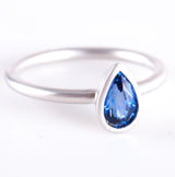 14k White Gold Pear Ceylon Blue Sapphire Solitaire Brush Finish Ring .79ct 2.5g