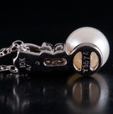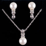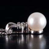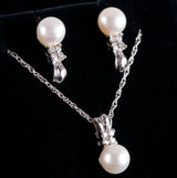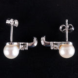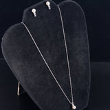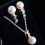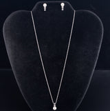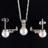 14k White Gold Round Bead Cultured Pearl Diamond Necklace Earring Set .12ctw
