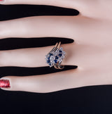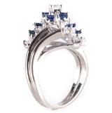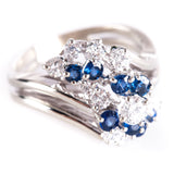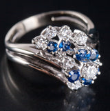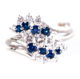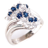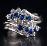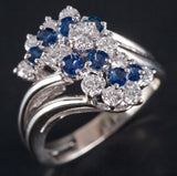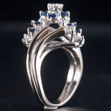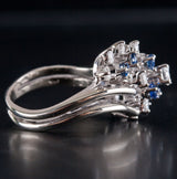 14k White Gold Round Diamond Sapphire Cluster Style Cocktail Ring 1.37ctw 6.0g