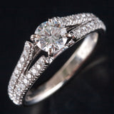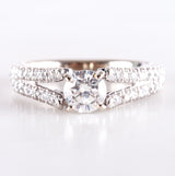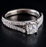 14k White Gold Round Diamond Solitaire Engagement Ring W/ Accents 1.10ctw 4.65g