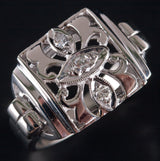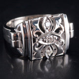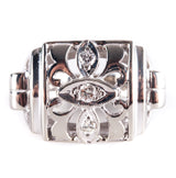 14k White Gold Round Diamond Vintage Style Cocktail Ring .035ctw 4.20g