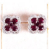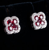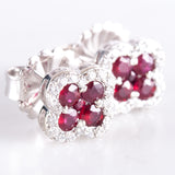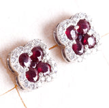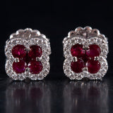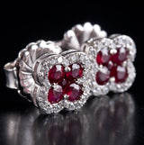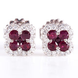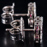 14k White Gold Round Ruby Diamond Stud Earrings W/ Butterfly Backs 1.12ctw 3.32g