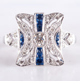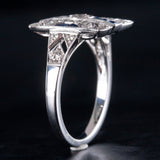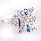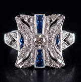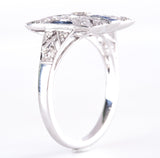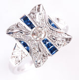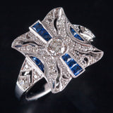 14k White Gold Sapphire & Diamond Vintage Inspired Cluster Ring .72ctw 3.5g