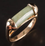14k Yellow Gold Cylinder Shaped Jade Solitaire Cocktail Ring 4.05g