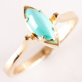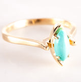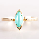 Vintage 1960's 14k Yellow Gold Marquise Cabochon Turquoise Solitaire Ring 2.75g