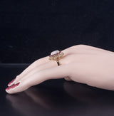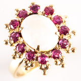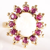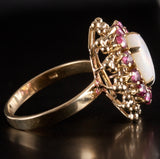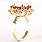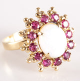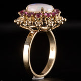 14k Yellow Gold Oval Cabochon AA Opal Ruby Halo Cocktail Ring 2.26ctw 4.98g